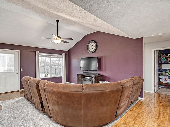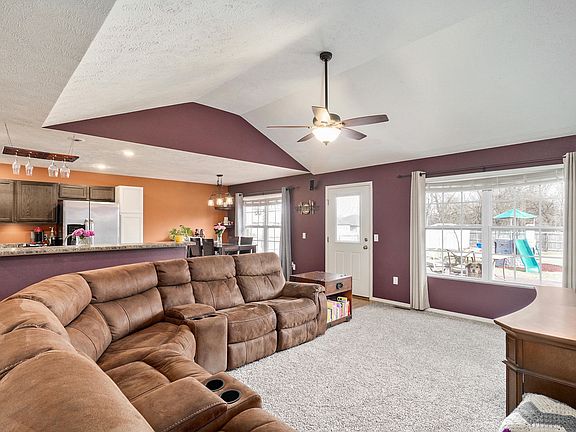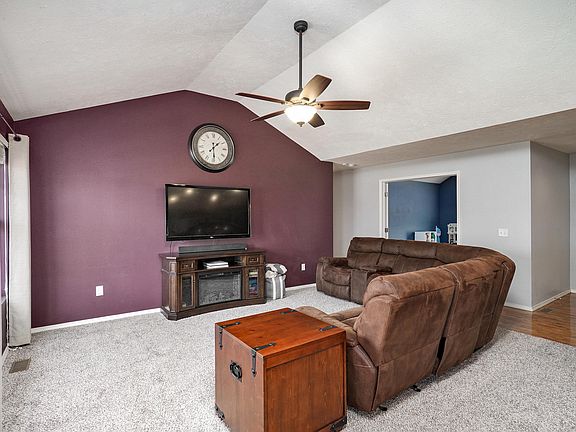 Beautiful home with 4 bedrooms or could be 3 bedroom with 2 living areas or office space. Open kitchen and living room. Master suite offers walk-in closet and private bath with double sinks and walk-in shower. Laminate floors in the hallway, entry, kitchen and dining area. Vaulted ceiling in living room and split bedroom plan. All appliances including the refrigerator stay with home. Security system, ring doorbell and NEST thermostat. Huge fenced backyard with oversized deck, pergola area with fire pit, swing set stays & storage building. Neighborhood has pool, children's play area, tennis and basketball courts!