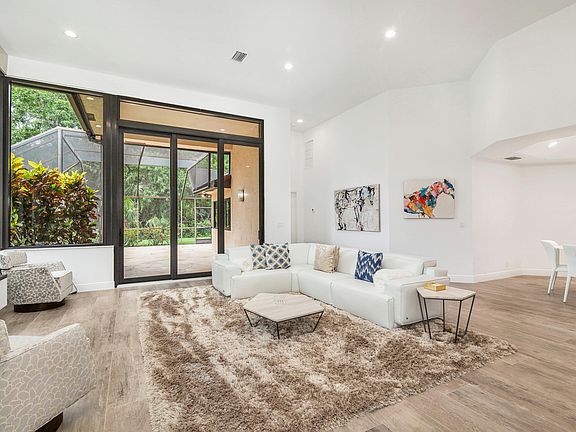 This luxury Villa is fully renovated to the highest of quality in design and architectural features. Located in the pristine community of Breakers West this 3BR 2BA 2 car garage is a rare find and a designer's dream come true. New kitchen and Baths. Mature trees, lush greenery and landscaping surround you the moment you walk up to your private Sand Drift Villa. Features include: All new Hurricane glass impact windows, transoms, sliding doors and custom designed glass entry door. The moment you enter you will be taken in by the 15ft high ceilings and natural light that pours in. Wide plank wood tile flooring is in all rooms. Custom lighting, skylights and dining room with wine bar. A large eat in kitchen with breakfast room that overlooks your charming entry garden. Kitchen has custom wood and glass cabinets complete with quartz counters and top of the line GE stainless steel appliances.