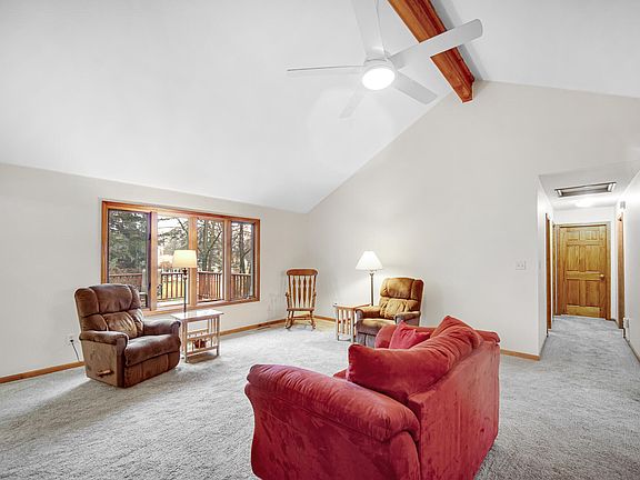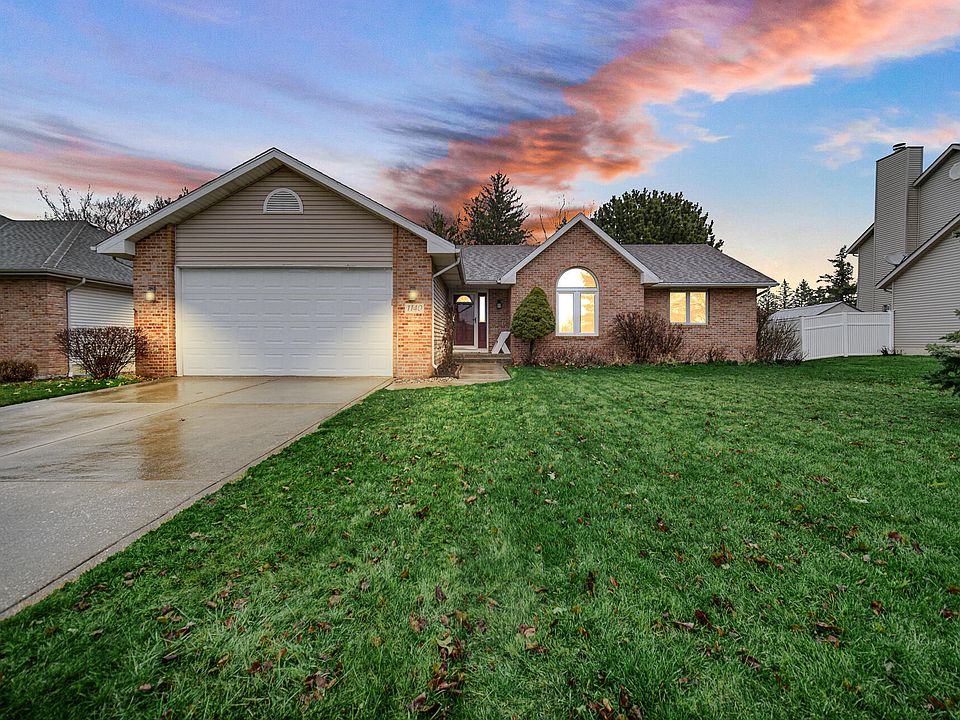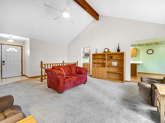 Lovely brick & vinyl ranch in Eagle Ridge Estates. Huge, open great room with beamed vaulted ceiling, and big picture window looking out over deck and backyard with large mature trees. Roomy kitchen has newer stainless appliances, and bright dinette area, with door to large back deck. Laundry room off kitchen has half bath, and access to 2.5 car attached garage. Large main bedroom ensuite offers double closets, huge full bath, with corner whirlpool tub, separate shower. Another full bath, and 2 more nice sized bedrooms, one being used as office/TV room has vaulted ceiling. Basement is bright and nicely finished, with family room and pool table area (pool table stays), plus large storage room, and walk-in pantry. Outback offers 18x14 deck, with mature trees offering privacy. 6 panel doors & neutral colors throughout. Very clean & well kept home.