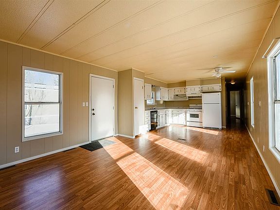 Move-In-Ready mobile home Welcomes You! Open and bright 3 bedroom 2 bath on the outskirts of Mountain Shadows, adjacent to a large open field with great views and mature trees. Master suite with walk-in closet, freshly painted, all new laminate wood flooring throughout, new faucets, light fixtures, appliances. Gas furnace was replaced in 2014. Upgraded insulation in ceilings and floors plus a 6x12 shed out back. Lot rent is $175 a month.