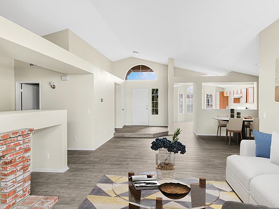 This stunning move-in-ready home has been beautifully updated, starting with a fresh coat of paint on the entire interior, as well as refreshed exterior trim and patio cover paint, giving it a crisp and inviting look. The kitchen is a dream, featuring ample countertop space, a convenient breakfast bar, and brand-new appliances, all complemented by the fresh flooring that extends throughout the home. The entire property boasts all-new flooring, with stylish and durable vinyl plank in the common areas and bathrooms, and plush new carpet in the bedrooms, creating a cozy and modern feel. Thoughtful updates continue throughout the home, including brand-new light fixtures, new faucets in both the kitchen and bathrooms, and new toilets in each bathroom. The spacious master suite is a true retreat, offering dual closets with mirrored doors, a private sliding door to the covered back patio, a dual vanity, and a skylight in the bathroom that fills the space with natural light. The original marble-look vanity tops and oak cabinets in both bathrooms maintain a touch of classic charm. The wood-burning gas fireplace adds warmth and character to the living area, perfect for relaxing evenings. The dining area and breakfast nook provide versatile dining options, making everyday meals and entertaining effortless. Outside, the freshly landscaped front yard boasts lush new grass with decorative rock-filled planters, enhancing the home's curb appeal. The backyard features a covered patio, creating a comfortable space to enjoy outdoor living year-round. This home is perfectly situated in an excellent location, just 200 feet from a large park and conveniently close to schools, shopping, and more. Don't miss your chance to see this beautifully updated home— come by today!