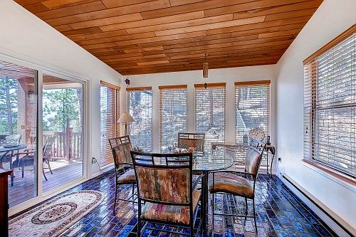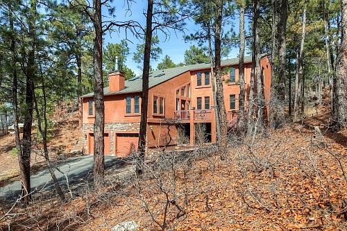 Complete info: http://1140tariplace.GreatCustomHome.com - Absolutely gorgeous custom stone/stucco luxury 2 story home on one of best lots in Pleasant View Estates. Beautifully landscaped cul-de-sac lot with two year round outdoor living spaces, breath-taking views of Pikes Peak & Front Range w/ additional parking on the property. Professionally landscaped lot includes rear patio, flagstone path to the front door, lawn & two large composite decks - perfect for entertaining or just relaxing. This elegant home is loaded with luxury finishes including including bamboo hardwood floors, wrought iron balusters on custom built stair case, vaulted ceilings on main level, granite counter tops in kitchen & bathrooms, & composite wood front porch. Huge picture windows in great room & dining rooms provide magnificent Pikes Peak views. Main level features gourmet kitchen that serves formal separate walk-out dining room on one side & kitchen eating nook & sun room on the other. Gourmet kitchen includes high end appliances, solid slab granite, pantry, computer desk station, & spacious eating nook that walks out to the sun room &rear covered composite wood decks. The spacious master suite is located on the main level & is adjoined by a very large walk-in closet & spa like bath featuring HEATED tile flooring, solid slab granite counter tops and huge walk-in shower w/ body sprayers. The main level study is a plus and perfect for a home office. The upstairs serves four bedrooms Jr. master suite with luxurious bath and two closets, another large bedroom with a private bath, 2 more spacious bedrooms, laundry area ,and spacious full bath. The basement is filled with natural light & features a family room with built in entertainment niches- perfect for TV viewing area. Basement also includes two spacious storage areas. The Gourmet Kitchen Spacious gourmet kitchen features solid slab granite w/ back splash, gorgeous cabinets w/ under lighting, pantry, upgraded appliances, bamboo flooring & large bay eating nook surrounded by windows providing incredible views of the forest. Included w/ this well equipped kitchen is a bill/work station. Walkout to wonderful composite covered deck & outdoor living spaces. Adjoining this cooks delight kitchen is a wonderful sunroom- mountain views from every window. The Formal Spaces Huge picture windows in great room & dining rooms provide magnificent Pikes Peak views. The great room is truly the heart of this amazing home with vaulted tongue & groove wood ceilings, warm wood mantle surrounding the fireplace, and plenty of natural lighting. The grand entry of this home also features vaulted ceilings, beautiful ceramic tile flooring and stunning staircase with wrought iron balusters and beautiful wood work. The Main Level Master Retreat The master retreat, perfectly situated on the main floor with an adjacent office, comes complete w/ a sitting area, the perfect destination for the end of a long day of work or play. An amazing, huge walk in closet with changing area is larger than most bedrooms and is complete with built-in shelving and ample hanging space. A spa like remodeled bath is sure to please & includes granite double vanity, stone tile flooring that is HEATED and enormous walk-in shower with body spray . Rounding out this master retreat are wonderful mountain and forest views. The Sun Room This luxury home comes complete with a delightful sun room that might be the best area of the entire home. Located just off the kitchen and walks out to the covered deck this area is great for entertaining and is a nicely added bonus to this pleasing home. Features include tile flooring, passive solar heating with the expanded full length windows that open for summer cooling and wood tongue & groove ceiling. The Outdoor Living Spaces Several outdoor living spaces provide limitless opportunity to enjoy this incredible setting in complete comfort. A year-round retreat features a covered composite deck complete in-ceilin