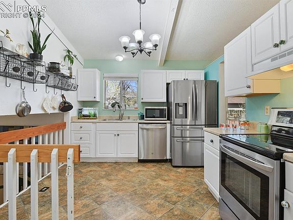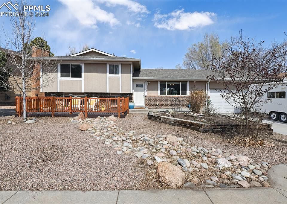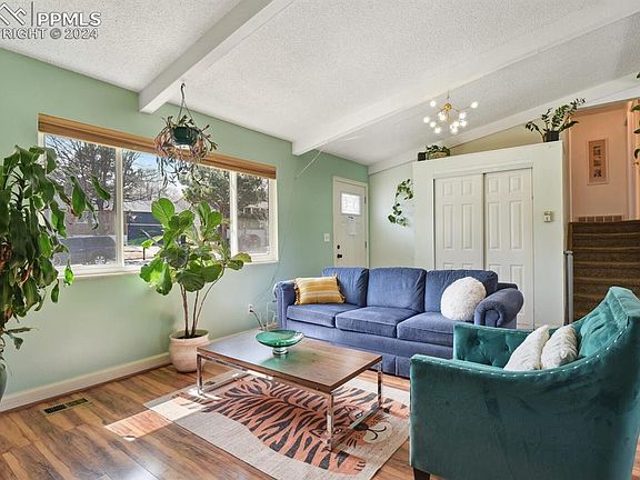 Create your own urban homestead in one of Colorado Springs' most popular residential neighborhoods, Holland Park! Located on the near westside in between Fillmore and Garden of the Gods, the location is ideal to get to most destinations around town or right into the mountains. This quaint 1979 4-Level home offers lots of curb appeal with a newly refinished large deck in the front yard from which you can enjoy mountain views and a new roof adds on to the exterior updates. The oversized 2 car garage offers lots of storage with build-in shelves and cabinets and the driveway is long enough to host an RV. The entryway opens into the bright formal living room with beamed, high pitched ceilings and an additional dining area. The kitchen is separated through pony walls that could easily be taken out after closing if someone wishes. Cabinets and appliances are both newer and well maintained. The family room with wood burning fireplace is half a flight down and one of the bathrooms is directly connected to it. One more level down, there are 2 bedrooms in the basement while the other three are located on the upper level including the primary suite and 2 more bathrooms. The backyard is accessible from the kitchen or garage and besides a fire pit area, enough space for a trampoline, and raised garden beds it includes a chicken coop! The chickens could possibly stay with the new owner and help you start your own homestead in this charming neighborhood!
