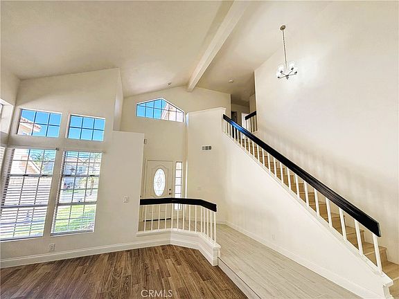 Shown like a Model Home!!! 3 Bedroom, 2 1/2 Bath, Immaculate LOOK LIKE NEW from the front to the back. Brand new interior and exterior paint. Spanish tile entry front porch, going into the house with tile entry. Step down to the living room with wood flooring, vaulted ceilings and wood blinds. Then into the kitchen with brand new tile floors, brand new cabinets, brand new Quartz countertops, brand new stainless appliances, brand new recessed lighting, and a bay window overlooking the backyard. Family room features brand new tile floors and remodeled half bathroom with an enormous laundry room on the side. Upstairs features brand new wood flooring throughout, hallway linen cabinet for extra storage. Secondary bedroom feature a bench window seat, double door closets, recessed lighting. Hallway bathroom upgraded with brand new cabinet with Quartz countertop. The spacious master bedroom features walk in closet. The master bath features brand new separate shower and bathtub, brand new cabinets with Quartz counter tops. Back yard with fruit trees and brand new built patio for your parties and gatherings. Minutes from OC and freeway. You won't find another gem like this. Hurry to make this your dream home.