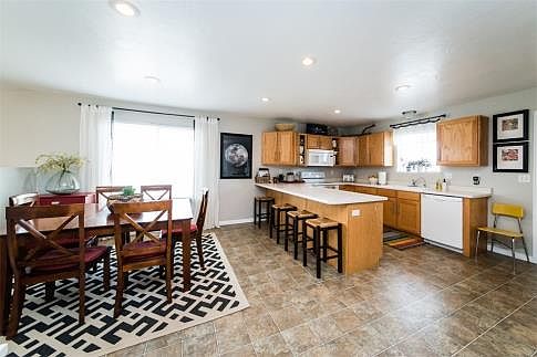 Welcome home! This well-maintained, very clean house with a great floor plan, 5 bedrooms, & 3 full baths is move-in ready. Inside boasts a formal living room for guests or reading a book, a downstairs family room that is wired for home theater, & an open kitchen & dining area (with the refrigerator & freezer included). Immaculate, fully landscaped yard is built to entertain with trex decking, patio, & fully automatic sprinklers, where you can spend your evenings by the fire pit or working in the thriving veggie garden. Storage is a breeze in the large storeroom, shed, & with the extra shelving in the garage. Excellent neighborhood, close to Heritage Elementary School. Buyer to verify all information.