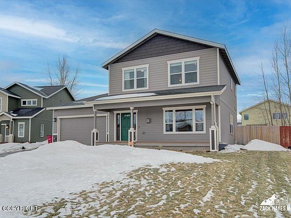 Beautifully maintained home on a cul-de-sac near downtown Palmer! A welcoming large covered porch, this cutie has a spacious open floor plan with laminate wood flooring and cozy fireplace. The kitchen has newer SS appliances, a prep island, gas range, & pantry with access to fenced yard & deck. Main floor has 4th bedroom perfect for a home office/gym.Upstairs is three more bedrooms, including a primary with en-suite, a full bath and laundry room. Close to downtown Palmer, Grocery stores, restaurants, Fair Grounds, Glenn Highway, trails, lakes and all the quaint town of Palmer has to offer. Quick commute to Wasilla and Anchorage. This is a must see!