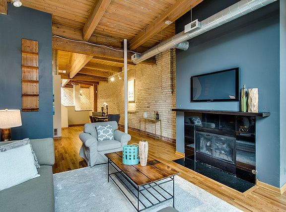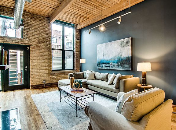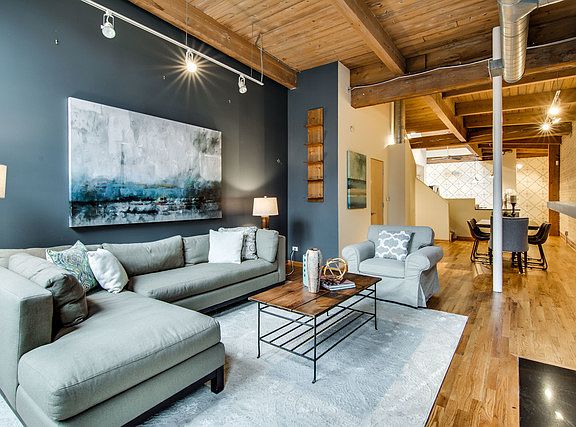 Lofted spacePrivate roof top deckExposed brickSoaring timber ceilingsLarge kitchenDramatic glass window wallSpacious open room sizes