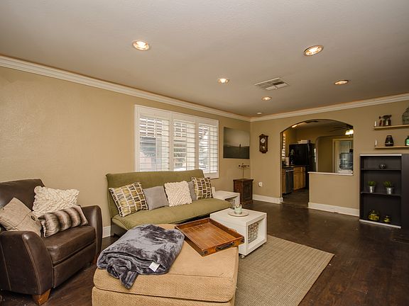 **BRAND NEW CARPET AND WOOD-LAMINATE FLOORING**Welcome home to 1140 W. Olive!! This charming Bungalow offers 1,082 square feet, 2 bedrooms, and 1.5 bathrooms. As you enter you will immediately notice the open floor plan and the abundance of natural light. The family room is accented with crown molding, rich laminate wood floors and high baseboards and opens to the spacious kitchen which features slate flooring, granite countertops, black kitchen appliances, and lends to a Dutch door entry to the backyard. Off the kitchen you will find a dining area as well as a utility room and a half bath. The backyard features a charming wood deck and a rock pool with a waterfall accent and built in bar stools. The backyard also features a "Tiki-Hut" which can be utilized as a garage or as an additional entertaining space. The master bedroom offers a large closet space with a built-in closet organizer and the second bedroom offers a roomy walk in closet with great views to the lushly landscaped front yard. Located within walking distance to downtown Redlands, the market, and shopping, this is a home that you don't want to miss!! Schedule your private tour today!
