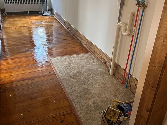 Freshly painted with renovation of new bath with shower/tub unit, 2 bedroom, new kitchen with stove and refrigerator included. Kitchen / living room combined . Laundry hookup available. Sitting room/ large hall with closet and shelving. All utilities included . No cable. Second floor upstair apartment. Great for two adults.