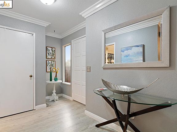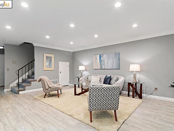 Shelter in style in this spacious and contemporary townhome tastefully remodeled from top to bottom! In the highly sought after Fairview Hayward Hills community, this end unit location offers a private, park-like setting surrounded by mature pine and eucalyptus trees. Interior features include tall ceilings with an open layout and a lovely deck off living/dining room that's perfect for entertaining or enjoying meals while taking in the view. The master suite is spacious with a wonderful, private deck to enjoy morning coffee. Recent updates include new flooring throughout, carpet in the bedrooms, crown mouldings, recessed lighting and new interior paint. The recently updated kitchen includes newer stainless steel appliances, white quartz counter tops with hand-painted tiles from counter to ceiling. Walking distance to downtown restaurants, local parks and all schools. Centrally located yet close to major freeways (880, 580 and 238). A perfect new start awaits you!
