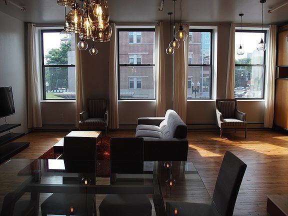 This dramatic, beautifully furnished Loft Style Apartment in the heart of the South End and within steps of the SOWA District and Ink Block features high ceilings and a dramatic wall of tall windows overlooking Peters Park with Tennis and Basketball Courts as well as a Dog Park. This apartment with 850 SF of living space features gorgeous distressed hardwood floors which are complimented by a silestone kitchen with pendant lighting. The raised bedroom is separated by revolving walls which can be positioned for privacy or an open lofted area. Custom closets make all of your storage problems disappear. In addition, this apartment offers 120 SF of additional storage space in the lower level with exclusive laundry for the unit. The building features a freight elevator and bike rack and is pet friendly. Whole Foods, Farmers Market, Cyclorama, restaurants, art galleries, public transportation and highway access are all nearby. Parking behind the building is available for $100.00 per month