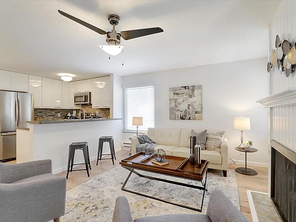 Extraordinary, modern light-filled paradise with the perfect blend of beauty, functionality and privacy. Prime Redwood City location walking distance to beautiful downtown. A bright entryway leads to a sleek modern kitchen with quartz countertops, bar seating, and stainless steel appliances. Central open-concept great room featuring a gas burning fireplace, hardwood floors, new double pane noise reducing windows and bonus office space. The property also includes a pool, two assigned parking spaces, laundry room and two additional storage areas.