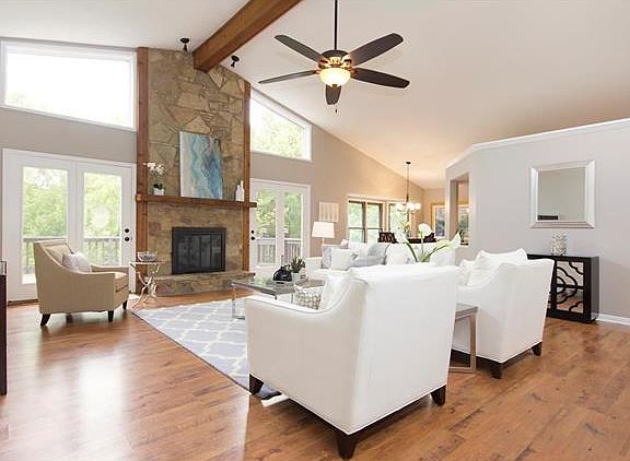 Impressive RANCH on 1.75 ACRES w/ VAULTED GREAT ROOM in St. Charles, 63301! Over 4,500 sq. ft. of living space! This 4 bedrooms, 3.5 baths home greets you w/ lush landscaping & large front porch. Soaring ceilings & stone fireplace in the great room create an inviting focal point. French doors flanking the fireplace lead friends and family outside to enjoy the 12 x 34 deck and COMPLETE PRIVACY of the heavily wooded backyard. NEW PAINT THROUGHOUT. Updated kitchen w/ breakfast bar, center island, dble pantries, & new downdraft electric cooktop. Elegant GRANITE COUNTERS IN KITCHEN, MASTER BATH, & POWDER ROOM. The huge master suite has its own access to deck. New carpet in secondary bedrooms. The FULLY FINISHED WALK-OUT LOWER LEVEL boasts a beautifully crafted bar, home office, full bath, & bdrm with cedar closet. Oversized HEATED GARAGE w/ workshop.$$ New HVAC, 2011; inground sprinkler; TOP OF LINE HOME SECURITY; $32k stone retaining wall, 2016; NEW ROOF, 2017. TOO MUCH TO LIST! MUST SEE!!