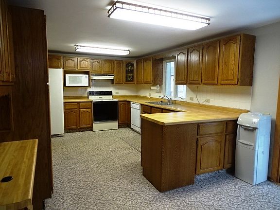 This ranch home that sits on a bluff and over looks Yellow Creek plus sits on 1.83 acres. Features a large living room with room for a formal dining room table and a gas fireplace, a large eat-in kitchen with lots of cabinets and counter space. All appliances stay sold asis. Off kitchen is a 3 season room that has a beautiful view. Home has two large bedroom, Master bedroom has one wall of closet space, main floor laundry with half bath. Lower level has family room with wood fireplace and bar. There is another room that could be a third bedroom, second kitchen, half bath and third stall garage. You can walk out to a brick patio. All freshly painted in a neutral color and carpets cleaned just ready for you! Great home for the price.