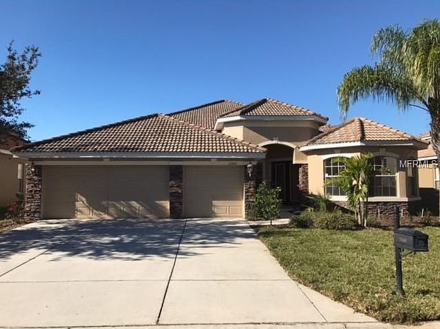 WELCOME to your new STUNNING home at 11400 Biddeford Pl, New Port Richey, FL in the gated community of Waters Edge. This Carrington model has countless exquisite upgrades throughout the 4 bedroom + office + bonus room, 3.5 bathroom, 3 car garage POOL/SPA home. Key exterior features are stone accents, tile roof, paver patio, rain barrel & gutters, tropical landscaping, lighting, screened lanai & fully fenced yard with an amazing pond view. As you enter through the double leaded glass doors, you will notice soaring ceilings, tile laid diagonally & double tray ceiling in the dining room. The chef's kitchen features unique mason jar pendant lighting with vintage light bulbs, stainless steel appliances, travertine backsplash, granite counters, breakfast bar, solid wood cabinets with trim & 2 pantries. From the dinette is a potential guest bedroom with walk-in closet & nearby is the full tub/shower bathroom with access to the pool. The master bedroom features tray ceiling & access to the lanai. The master bathroom is a spa experience with dual sinks, Corian counters, garden tub & spacious shower. The walk-in closet off the bathroom is so big that it can be its own room! The remaining 2 bedrooms & bathroom are located on the opposite wing of the home on the first level along with the formal living & dining rooms & office. Upstairs is a massive bonus room wired with surround sound; thus a perfect media room with half bathroom. This is truly a SPECTACULAR HOME in a community with wonderful amenities. Don't wait!