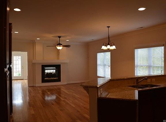 Lovely home on a corner lot in Chester Village Green. This home boasts a formal dining room with built-in shelves and cabinets. The spacious kitchen has cherry cabinets, breakfast bar, granite counter tops, cook top, wall oven, microwave, stainless steel appliances and is open to the family room. Family room with hardwood flooring and see-through fireplace to family room. Kitchen, family room and formal rooms all have hardwood flooring. First floor master bedroom suite with two walk-in closets, shower and double vanities. Second bedroom on the first floor can also be used for an office or gym. Second floor has two generous size bedrooms with double closets and hall bath. This home is situated on a corner lot with rear service alley and rear loaded two car garage. Full size covered porch on the front and raised patio in the rear. Although there are no known defects, home is to be sold as is.