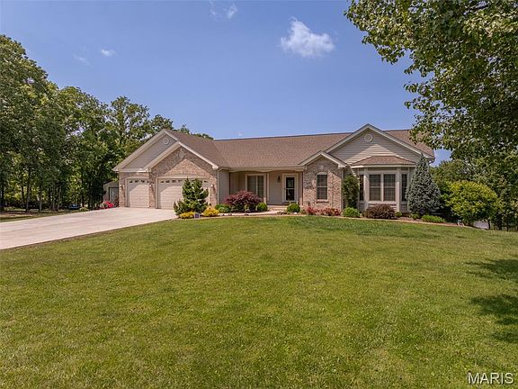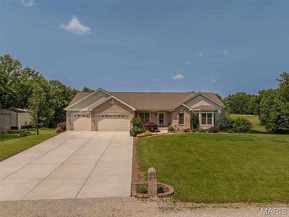 Custom Ranch Home on 5.53+/- acres with Detached Shop and Stocked Pond. Nestled on over 5.5 acres, this custom-built ranch-style home offers a serene country retreat. The property features a 24' x 30' detached shop, a 1-acre pond stocked with catfish, bass, and bluegill, and a beautifully landscaped yard adorned with flowering bushes, a screened-in gazebo, and a charming walking bridge. Upon entering, you'll be greeted by a 10' x 18' foyer with hardwood flooring that leads into a spacious great room boasting vaulted ceilings and a floor-to-ceiling stone fireplace. The expansive 25' x 17' eat-in kitchen is perfect for gatherings, complemented by generously sized bedrooms and walk-in closets. The vaulted master suite serves as a private sanctuary, featuring a large jetted tub and a separate shower. Convenience is key with a main floor laundry area. The finished walk-out lower level provides additional living space, including a recreation room and wet bar, ideal for entertaining. Enjoy breathtaking views from the two-tiered Trex composite deck, complete with vinyl stairs and railing, perfect for outdoor entertaining. The oversized 3-car garage offers ample space for vehicles and storage. This property seamlessly blends comfort, functionality, and natural beauty, making it an ideal place to call home.