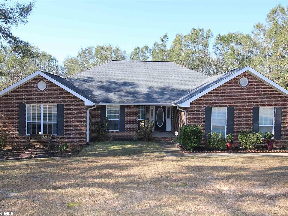 Popular Bay Branch Estates all brick one story home on a quiet street that leads into double culdesac. Nice green space buffer behind property. Covered porch opens into 6ft wide foyer. Beautiful wood laminate floors lead into huge living room with vaulted ceiling, gas fireplace and access to deck. Kitchen has newer appliances, updated painted cabinets, pretty back splash, big pantry & breakfast island with wine fridge. Dedicated eating area in kitchen and separate dining room which is currently used as 4th bedroom, but could also be great space for home office. Big master suite with double vanity & walk-in closet. Both guest bedrooms are good size. Big laundry room with cabinets & shelving. Side entry double attached garage. Great backyard entertaining space with 15x38 upper deck and 15x19 lower deck. Upper deck has pergola and natural gas connection. Completely fenced with double gate & single gate access. Gravel parking pad for boat. Nice storage shed. Seller states property goes approx 100ft beyond fence. Property zoned for possible USDA 100% financing.