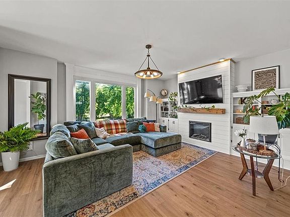 Welcome to this beautifully updated 4-bedroom, 3.5-bath home, thoughtfully designed for comfort and style. Step inside to discover sleek new flooring throughout the main and lower levels, setting the stage for a warm and inviting atmosphere. The living room features a stunning fireplace flanked by custom built-in shelving—perfect for cozy nights or entertaining guests.