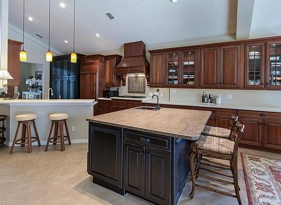 Spectacular Expanded and Updated Spinnaker Model with East, South and West Exposure, Additional s.f. added for 2,533 under air, Original Pool and Enclosure removed and 36' x 40' New Pool, Spa, Travertine Decking and Enclosure plus 8' x 22' Outdoor Kitchen area, All Doors and Windows Replaced with Storm Rated and French Doors to the Lanai from Master Bedroom, Huge Custom Rich Wood Kitchen with Center Island with Sink, Breakfast Bar and Ice Maker, Ceramic Backsplash, Gas Stove, Thermador Double Oven, Big Formal Dining with China Hutch and Glass Sliders to Lanai Pocket, Living Room and Master Bedroom Walk-in Expanded, Flooring is Diagonal Tile, Engineered Wood and some Carpeting, All Bathrooms En Suite with Custom Cabinetry and Fixtures, Vaulted Ceiling opens to 2nd Floor Loft Bedroom, Bath, and Den with Custom Open Wrought Iron Stairway, Entry Glass Doors open to Custom Glass Flooring in Foyer, New AC 2015, Generator ready, Paverstone Driveway and Sidewalk, Garage Floor Painted and Extra Storage, Extensive Landscaping and more, Must See!