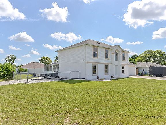 Active with Contract. Settle in on this nice sized corner lot. An oversized driveway, a separate driveway on the side of the home and white rock landscaping draw your eye to this home instantly. Through the double door entry, you will find title and wood laminate flooring flowing through the home as well as archways leading you from room to room. On the first floor of the home you will find loads of options for the family to gather. An office is provided with a guest bathroom right outside the hallway. The living room is a great size with the kitchen right outside. The kitchen offers amazing counter and cabinet space, a kitchen island and pantry space. The formal dining room is connected to the kitchen for serving convenience. Upstairs you will find 3 guest bedrooms all perfectly sized with ample closet space, ceiling fans overhead with a guest bathroom right outside the hallway. The master bedroom is a great size with a walk-in closet lined hallway that leads to the private bathroom. The master bathroom provides a garden tub, step-in shower, extra linen space and a vanity area. Out back hang out in your lanai and spend the day in the pool or on the open patio and roast some marshmallows in the fire pit. Let the kids or pet run free in the fully fenced back yard. Come see today!