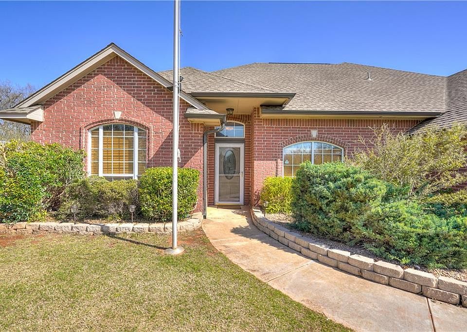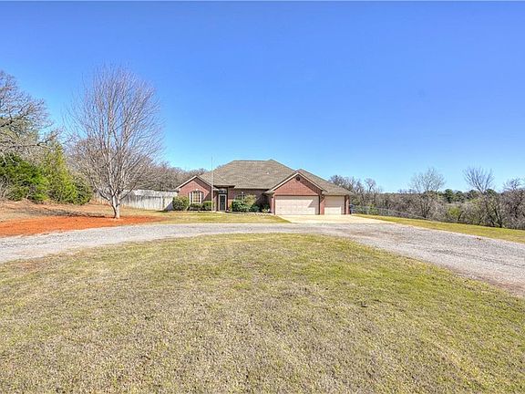 Swimming Pool! Beautiful, kidney-shaped, concrete pool just in time for summer! Enjoy this 5 acres under the covered patio or out in the sun on the large deck. 10 minutes to Tinker and shopping. Interior is freshly painted with a neutral tone that goes with gray or beige. Home features 3 bedrooms and 2 studies (can be bedrooms). Master suite is oversized with it's own private study attached. Master bath has been updated with granite, dual vanities, whirlpool tub and Australian closet. This home has so much storage, walk in closets in every bedroom, walk in pantry and oversized laundry closet. Could easily be used as a 5 bedroom. Spacious rooms, mother in law plan, flexible space. Many upgrades like geothermal HVAC, attic elevator, storm shelter in garage, water softener and filtration system. Large dog pin. Storage shed. This home is in excellent condition and ready for it's new owners. Carl Albert schools, great highway access. You won't be disappointed!