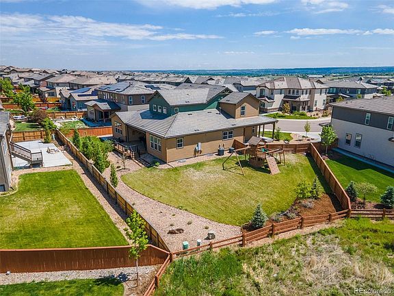 Welcome home to this gorgeous and grand 4 bed/ 4.5 bath Shea home in Parker's most highly sought-after neighborhood, Stepping Stone! Meticulously designed with hand-selected upgrades throughout, this lovely home boasts a main-level primary suite, a full bath accompanying all bedrooms, 3-car garage and a phenomenal deck and backyard which backs up to open space and miles of trails. Before you enter the impressive great room, there is a spacious office with custom built-ins and glass doors for privacy. The great room features soaring ceilings and stacking glass sliding doors that open to the deck. A cozy sitting area with a fireplace offers a peaceful space between the living room and the stunning gourmet chef's kitchen. Fully equipped with Monogram professional grade appliances, including 3 ovens and a 6-burner gas stove with grill, this deluxe kitchen displays over 20' of custom soft-close cabinetry and a huge central island topped with rich Delicatus granite. An additional sink towards the 10' long pantry, provides for a wet bar option! The dining room flows effortlessly from the kitchen as counters and cabinets continue for serving and storage needs, and another set of sliding doors invite you to bring the party outside for those epic Colorado sunsets. The backyard space, overlooking the East-West trail, features garden beds, a lush lawn and play set! The elegant main level primary retreat leads way to the exquisite 5-pc bath with a freestanding bathtub, a glass enclosed rain shower and dual extended vanities. Head past 2 large WIC's to the laundry room and connecting mudroom. Upstairs, relax in the sunny loft/flex space. Three secondary bedrooms are located here as well, each with ensuite bathrooms, meaning no one has to share! Over 2,800 sq ft in the unfinished basement invites you to create space as you need! HOA included membership to the Lantern House Community Center. Quick access to the highway and Park Meadows! Come explore the best Parker has to offer!