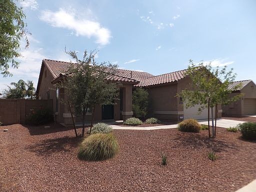 Lovely 4 bed/ 2 bath spacious home boasting 2169 sq ft with a popular split-floor plan. This home has gorgeous 18 inch neutral tile and 9 foot ceilings through-out. As you walk-in, you are greeted with a formal living room, dining area and den/office, which may also be used as guest room. Continue through to the kitchen and family room; kitchen has large island, upgraded countertops, walk-in pantry, eat-in area and opens to family room, perfect for entertaining! Down the hallway you will find the master suite which is over-sized and has a full master bath with remodeled tile on the shower and garden tub and , double sinks, and great walk-in closet. Additional bedrooms are split for maximum privacy with guest bathroom shower remodeled with tile to match master bath. Backyard has nice desert landscaping and extending covered patio. Home comes with views of beautiful greenbelt across the street. Solar installed on 11/11/2020.