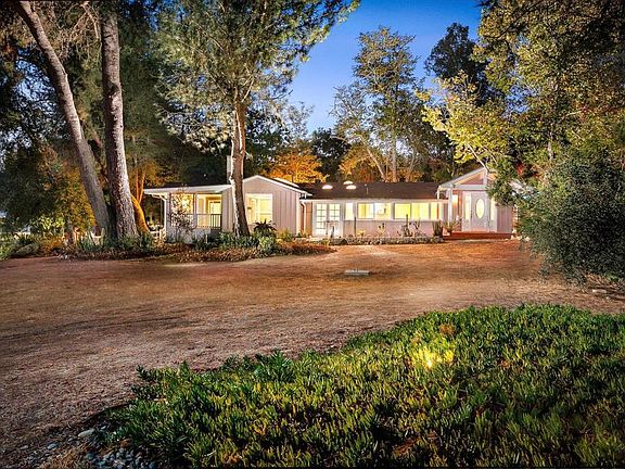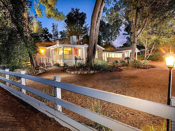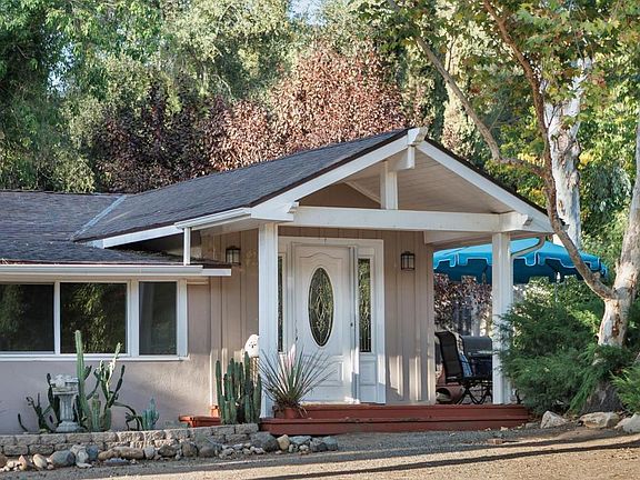 Welcome to your very own enchanted retreat, formally known as High Valley Ranch at the end of Betsworth on over 5 Acres is this gorgeous piece of serenity, nature, laced in magnificent oaks, sycamore, trees, and seasonal streams. Stop and listen to the sounds of the breeze dancing through the trees (no traffic noise here). There is a local lore that a Woodstock festival was once hosted here. Originally built in the 1940’s and tastefully updated in 1976 and remodeled more recent, including the kitchen and baths. Flex rooms were added, great space for gym, office, or hobby room. 4 bedrooms, 4.5 Baths with 3276 SF including the guest cottage. The main house is estimated at 2476 SF (based on previous appraisal) and 800 for Guest cottage. Enter through double entry doors into a large formal entry/family room with Dual French doors to side entertaining patio. The kitchen/family room and breakfast nook/center island create a relaxing informal environment for family and guests. The living room has Fabulous open beam barn with double wood doors. Ready to relax after a long day on the Ranch, the primary suite is well suited with dual closets, including a beautiful bath with walk in shower, dual sinks, and water closet. A screened patio with access direction from the Living Room and Primary provides lots of fresh air. Additional Features include: 24 Solar Panels Paid, Moosa Creek - Seasonal stream and one year-round stream. 1400 SF Barn/Workshop with 20' Ceilings, double door entry. Additional 8x16 Tack Room. Horse Enthusiast there is water and electric plumed to add lighting and build an arena area and plenty of space to bring a Ranch Hand. Auto irrigation system uses water from Well (buyer to verify production, testing, etc.). Main residence and Guest house are on VCWD Municipal water. Tankless Water heater, wainscot. Open space, lots of useable land, areas for horses, pool, Garden Beds. Covered Garden starter areas. ADU (Laundry/bath combo). Well loved Guest Cottage that needs TLC using your imagination: Approximately 800 sq ft, complete with a laundry/bath combo and a newer roof. This property is a rare find, blending history, natural beauty, and endless possibilities to create your ideal retreat or ranch setup. Perfect for those seeking a peaceful, versatile space with modern amenities in a storied, scenic setting. Space for everything you can possibly want and more, So much versatility and potential!