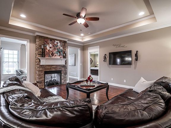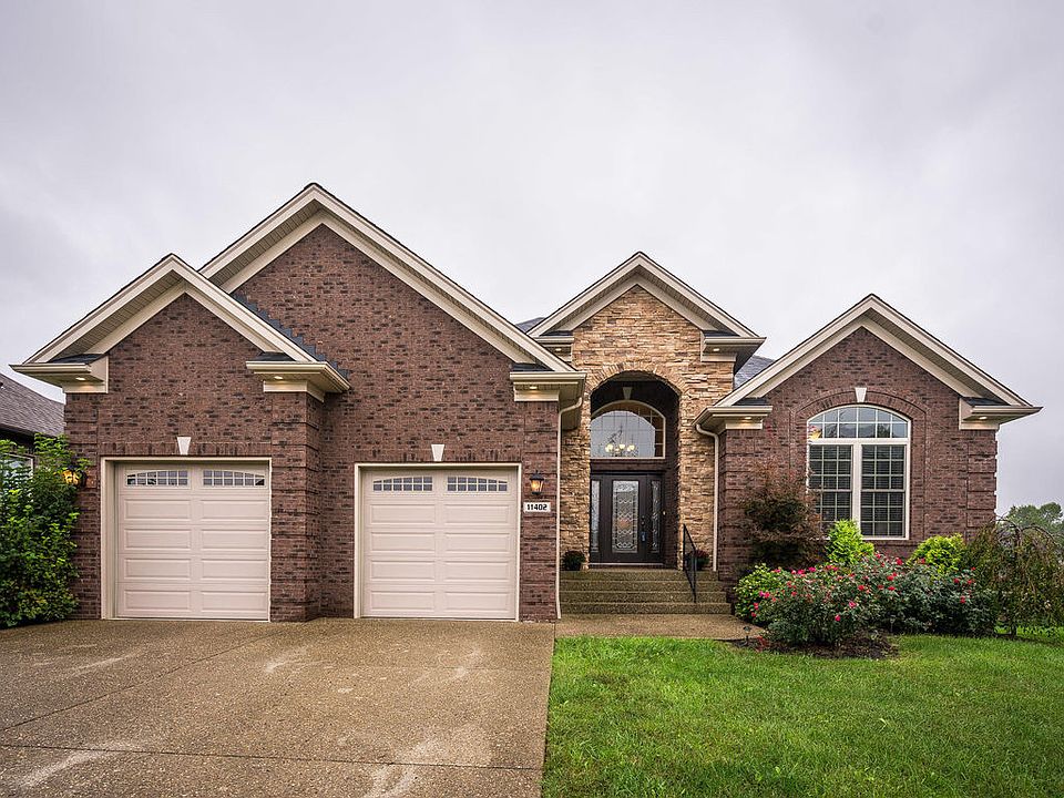 Beautiful stone and brick ranch with walk out basement in the highly sought after Little Spring Farm neighborhood! This home features a spectacular stone arch entry way with a high ceiling and plenty of natural light flowing throughout the open floor plan from the foyer. You will love the gorgeous hard wood flooring that goes from the living area to to the dining area, and into the kitchen. The spacious first floor master suite boasts a double vanity, garden tub, and walk-in shower. In the walk out basement you will find a full kitchen, pool table, and living room-perfect for entertaining! There is a also a full bathroom with a large walk in shower as well as an exercise room and office. Off the back of the home you will find a large covered deck with a patio underneath on the lower level.