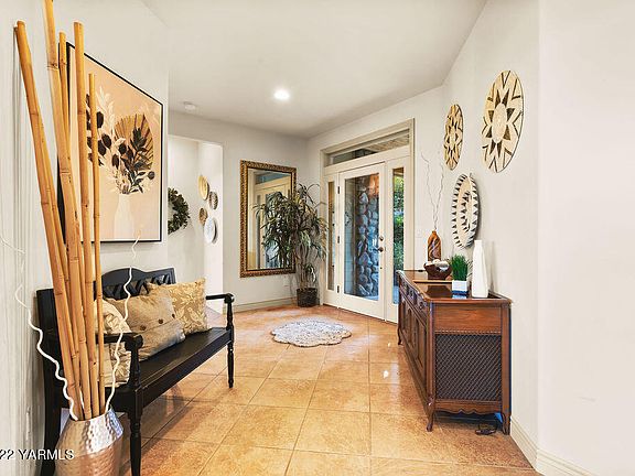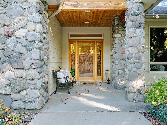 West Valley rambler at the end of a tree lined driveway gated for privacy. The custom river rock entrance offers a warm greeting. An open concept kitchen, living and dining area features plenty of windows allowing for beautiful valley views and lots of natural light. A cozy gas fireplace is a focal point from the great room, dining space and kitchen. The kitchen is the perfect space for the entertainer in your family. Double ovens, large pantry, ample counter sofa and storage and an eight seat eating bar create an ideal space for family Gatherings. The home was a custom build and designed with ADA accessibility in mind. Outside three separate patios overlooking the large lawn and mature landscape. A three car attached garage has a third bay heated and cooled that would function as a perfect workshop or office space. Check out this property and all it has to offer.