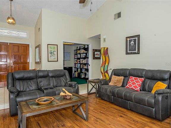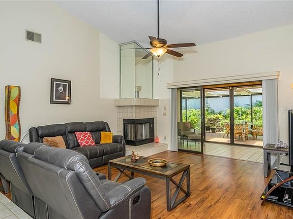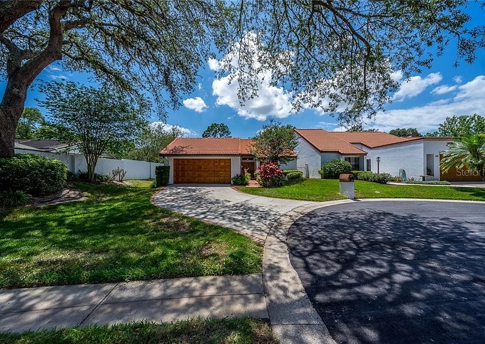 Lovely villa single family home in River Landing, 2BR, 2bath, with office and inside utility room, Great room with wood burning fireplace, eat-in kitchen, with separate formal dining room, great room opens to Florida room and patio that is covered, beautiful garden and fountain view. This is a split floor plan, and well maintained and has 2 car garage. All appliances to stay as well as office shelves and desk can stay if purchaser wishes, all other furniture is available for sale separately. Seller had solar panels installed for energy efficient heating and cooling. This home has access to a beautiful gated park with pool, tennis court, situated on Hillsborough River, with Gazebo, and dock like area, absolutely beautiful walking area. Purchaser if owner occupied will receive a 3-month Social membership to Temple Terrace Golf and Country Club.