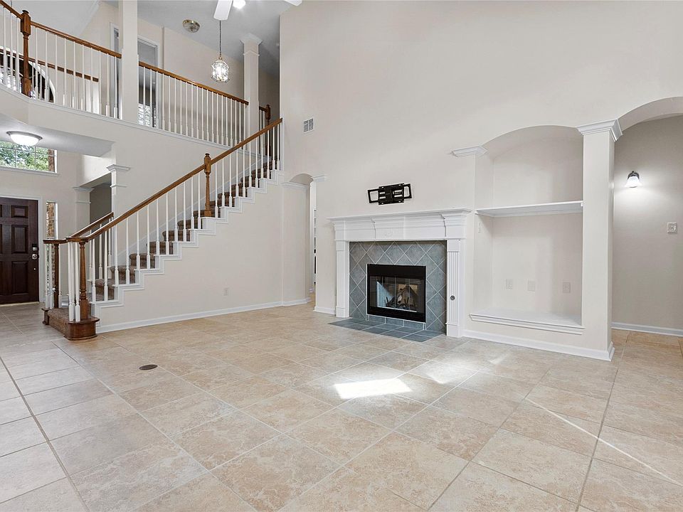 Beautifully renovated home in exclusive Lakewood Crossing! Tile floors down & all bathrooms. Gourmet kitchen w/ nice cabinets for creating a grand family meal. Quartz kitchen counters & a country-style sink. Kitchen opens to large family room w/ high ceilings & warm fireplace. Lots of natural lighting just open custom blinds thruout. Spacious primary BR w/ ensuite bath has soaking tub, shower & quartz vanities. Private library/office w/ fireplace. Updated baths. Large backyard w/ patio deck & many shade trees. An awesome rental opportunity!