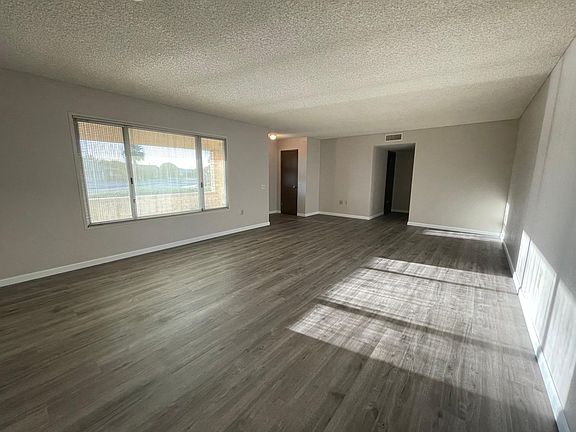 Spacious, 1827 square foot, two-bedroom home on .45 acres with desert-like landscape on cul-de-sac. Many updates including new luxury vinyl planking in living room, Arizona room, kitchen and main bathroom. New carpet in both bedrooms and walk in closets. New range and refrigerator. Freshly painted. Large living room with entrance closet. Master suite features master bath and walk-in closet. Built in bookshelves and desk in Arizona room. Covered lanai (patio). Utility room with washer and dryer that leads from kitchen area to two-car garage. Tenant pays electric and any elective internet or cable. Utilities included are trash pick-up, recycling and water. Available November 1, 2025.