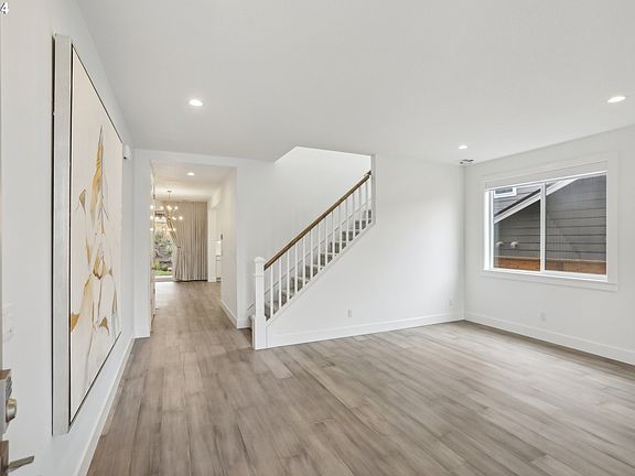 Stunning modern masterpiece in the serene Scouters Mountain neighborhood of Happy Valley! Quality Toll Brothers custom construction & owner provided high end finishes. Fantastic layout features high ceilings throughout complete with a great room upstairs, family & living rooms on the main level, a large kitchen with center quartz island & a meticulously designed outdoor living space with 16' multi-panel stacking glass doors. Enjoy an abundance of natural light & the peak a boo views of Mt. Hood from the Great room. Spacious upstairs primary bedroom with ensuite bath & oversized walk in closet. Guest room with full bath on the main level, 3 additional guest bedrooms & laundry room upstairs. Unique indoor/outdoor living space! Custom designed & created backyard oasis with sitting areas, outdoor dining, heat lamps & a neighborhood creek behind the home. This is a modern smart home with $200k in upgrades & custom details. The house is furnished & decorated with attention to details for contemporary style themes, convenience and practicalities, including: Keyless entries, 3 car insulated garage, custom fireplace & bathroom finishes. UPGRADED carpet, kitchen cabinets, laundry room, faucets, sinks & toilets. Accessible downstairs bath. Smart/modern features include: Outlets inside all sink cabinets, outlets inside bathrooms with LED night light & USB, dimmable LED lights (app controlled) & USB outlets throughout. All app controlled light switches are custom labeled with LED backlight. Stairway lit with color changeable trip lighting. Strip lighting under all kitchen cabinets. Surround sound system installed in the family room & dining area. Backyard oasis is further enhanced with custom cedar horizontal fence, custom wired lighting & automatic drip system. Front yard is equipped with an automatic sprinkler system. LED TrimLight is installed on eaves around the house & easily controlled with an app for holiday lighting and everyday ambiance. Ask for full list of upgrades!