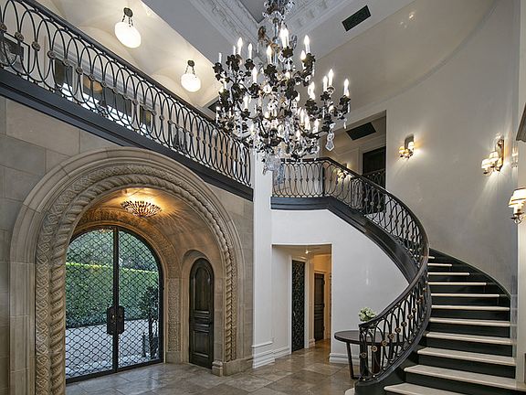 Set behind private gates and surrounded by lush hedges and ivy-covered porticos, this spectacular villa soars above the city lights on one of the only cul-de-sacs in Bel Air. The former estate of Peggy Lee, the home was stunningly reimagined with materials sourced from around the world and installed by master craftsmen, including Venetian plaster walls and hand-sculpted ceilings and moldings. A soaring, two-story foyer spills into the great room lined with accordion doors that open to the pool. The main level includes a formal dining room, chef's kitchen, elevator, wine cellar, library, office and screening room. Upstairs features a 2,000-SF terrace with panoramic city views, full catering kitchen, outdoor fireplace, 3 ensuite bedrooms and exquisite master suite with dual showroom closets and opulent bathroom. Modeled after famed architect Addison Mizner, the romantic grounds include pool, spa, water fountains, loggia and terraces with full outdoor kitchen, pizza oven and sport court.