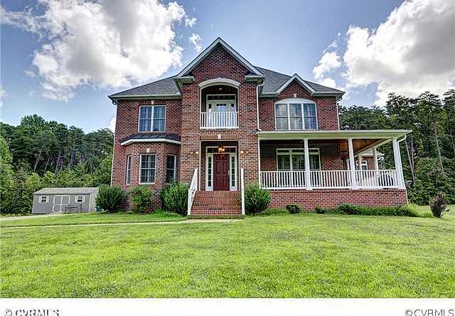 All brick home on 5.7 acres! Featuring formal rooms, family room, sunroom and nicely equipped kitchen with granite, ceramic backsplash, recessed lights, under cabinet lights, stainless appliances, island with cooktop and a pantry. The sunroom opens to the rear deck and front wrap-around porch. 2nd floor has bamboo flooring, large master with his/hers walk-in closets & attached bath with his/hers vanities, shower with 2 shower heads & jets and a soaking tub. Bedrooms 2 & 3 share a jack & jill bath. More features are a 2 car garage, central vac, Rinnai tankless water heater, plantation shutters, 2 large decks, detached storage shed and more. Close to I64, I288 and I295. Great opportunity, don't miss this one!