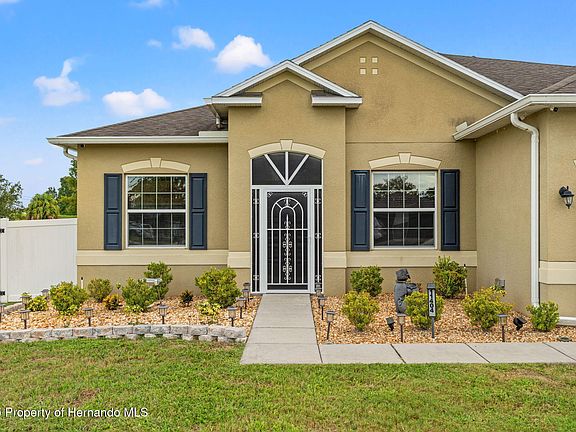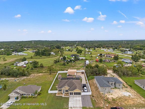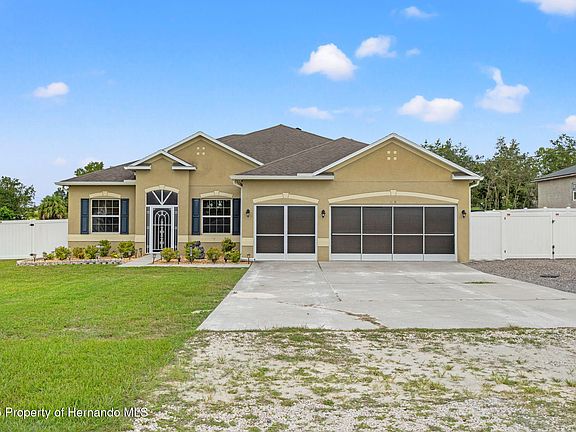 Welcome to your own private paradise! This beautifully updated 4-bedroom, 3-bathroom, 5-car garage, pool home offers the perfect blend of comfort, luxury, and functionality—nestled on a spacious ½-acre lot in sunny Hernando County. Step into the resort-style backyard oasis— a true entertainers dream! The heated pool feature a large built-in bench for ultimate relaxation, an added perk, the spa waterfalls into the pool— creating the perfect background to unwinding after a long day! The expansive paver patio offers both covered and open-air spaces, perfect for use year-round. Enjoy cookouts, gatherings, or peaceful mornings under the oversized gazebo, surrounded by lush landscaping and a fully vinyl-fenced backyard (2022). Car enthusiasts and hobbyists alike will love the additional 2-car garage (720 sq ft - 24x30), fully equipped with electric, a painted floor and a Tuxedo lift (with 9,000 lbs capacity). Extra outdoor features include a full house Generac generator (2020), full house water softener (2025), gravel driveway in both front and back, additional concrete slab, and a storage shed with electric—not to mention a playground and impeccable curb appeal. Inside, the home is equally as stunning, be greeted with a beautifully updated interior. With luxury vinyl floors throughout, a thoughtful floor plan and beautiful natural light, this home just longs for you and your personal belongings! The entryway opens to a separate office, with double doors, an open dining room and an oversized living space butting up to the chef's kitchen— remodeled in 2020, boasting with quartz countertops, wood cabinetry, stainless steel appliances-- with a state of the art Samsung refrigerator (oven 2025), and a cozy eat-in dining space. The owner's retreat, a true sanctuary— offers a peaceful escape, with tray ceilings, complete with a spa-inspired en suite bathroom offering a soaker tub, walk-in shower, double vanity, and two closets—one with custom built-ins. The tri-split floorpan, gives three additional bedrooms, all generously sized, offering comfort for family or guests while two updated guest bathrooms provide modern finishes and convenience. You'll love the spacious laundry room with extra storage, perfect for keeping things organized and functional. The home also includes keyless entry, Ring doorbell, and a full interior and exterior camera system for peace of mind. With tasteful upgrades throughout, this home offers both style and substance, making it a must-see! Call today for your private showing!