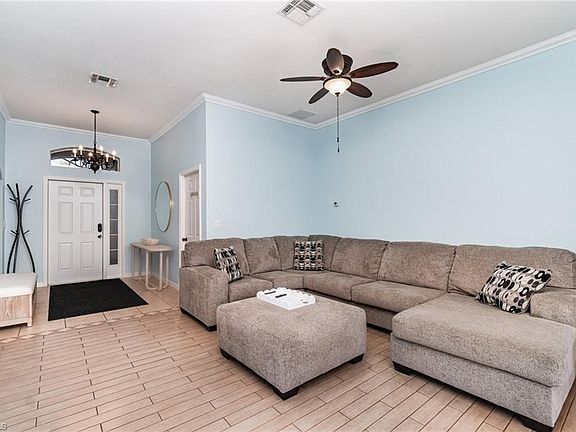 Welcome to your dream home in the highly sought-after Cypress Cay Community! This spacious 3-bedroom, 2-bath residence offers over 1,880 square feet of thoughtfully designed living space, perfect for both entertaining and relaxation. Enjoy the luxury of split bedrooms, ensuring privacy for everyone. The expansive flexible entertainment area is ideal for gatherings, while the huge eat-in kitchen—with its breakfast bar and formal dining space—invites culinary creativity. Step into the great room style living room, where natural light pours in, enhancing the open feel of the home. Outdoor living is a breeze with the covered lanai and screened pool area, complete with brick pavers that blend seamlessly into this serene oasis. You'll love the tile floors throughout, elegant crown molding, and the inviting screened front entrance. The master suite is a true retreat featuring dual walk-in closets and a lavish en-suite bathroom, equipped with dual vanities, a separate tub, and a shower. Convenience continues with a laundry room and two spacious pantries. Recent upgrades add peace of mind: a brand-new roof and screened pool cage (2023), new fence (2023), hot water heater (2022), and pool pump (2022). Plus, (available with membership), you can enjoy all the community perks with a pool, pavilion, and playground just steps from your door. With easy access to 15 miles of biking and jogging paths, local eateries, breweries, and being only 10 minutes from SWFL airport and 30 minutes to beautiful beaches, this home is not just a house; it's a lifestyle. Don’t miss out!
