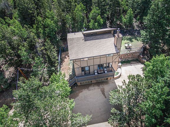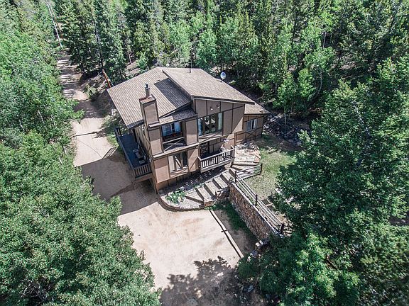 A Mountain Contemporary Gem privately nestled on 2.12 acres in popular Conifer Mountain. Beautiful and abundant windows streaming in natural light and mountain views. Whether you want to enjoy morning coffee on one of two decks or an evening BBQ on your flat and usable lawn this is the home for you. A pellet stove warms the main floor living room, kitchen, dining room and den. Upgraded kitchen cabinetry,walk in pantry,under counter lights, tile backsplash, built in desk and shelving and new Pergo flooring. Upstairs the master bedroom has expansive views of Pikes Peak and is vaulted, sunny and has an extra sitting area. New Roof in 2013, new exterior paint in 2013 and 2 custom rock retaining walls accent the landscaping. This home has warm southern exposure and beckons you to be surrounded with privacy and serenity.