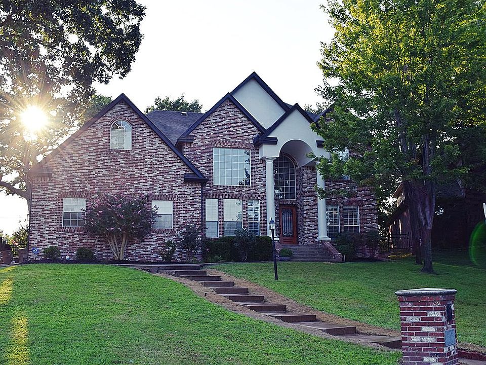 Located in the lovely Graystone addition, come see this pristine 4 bed, 3.5 bath home nestled in a gorgeous setting with mature trees, prof landscaping + very private backyard. Enjoy the beautiful crown molding, open concept living area with 2 sided fireplace into the office, formal dining, and a fully updated kitchen with granite & stainless appliances, Primary bed down, 3 beds up, one that could be a guest suite or 2nd primary, along with 2nd living or game room upstairs. Large indoor safe room shelter!