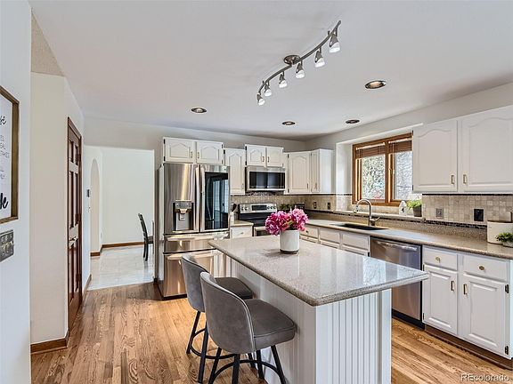 Beautiful Home in Highly Desired Area. If you are looking for an elegant and spacious home, this is the one! New Exterior Paint and ready for you! Lovely front porch and elegant entry with glass storm door, Formal Living and Dining Rooms, main floor Home Office with built-in cabinets, Impressive Family Room with vaulted ceiling and brick wall fireplace, skylights and abundant light! Gleaming hardwood floors, Entertainers house with well designed kitchen and breakfast nook, Butler's pantry area with wine cooler refrigerator. All appliances, French Door Fridge with double glass door, stove with double oven, quiet dishwasher and wine cooler, stay with the house. There are 4 bedrooms upstairs including the Spacious Master Bedroom. The Master Bedroom feautues: Vaulted ceilings, Barn door to the en-suite master bathroom, walk-in closet, shower and bathtub, full size window in master bathroom area floods the space with light. A total of 3 additional bedrooms on the 2nd floor... Plenty of closet space and likely the biggest secondary rooms you will see anywhere. The basement was recently professionally finished with a flex room, 1/2 bath and a movie viewing area. Full size freezer in basement is included with the house. Oversized 3 Car Garage with service door, epoxy floors just finished. Please note - the Movie Projector, Screen and Recliners negotiable . The backyard is inviting with a large deck, fully fenced (rabbit proof!) and mature landscape. Plenty of room inside and out. Showing Start on Friday February 23rd. Schedule your appointment today.