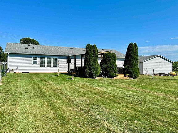 Showing Start 09/07/2023 Country Living on almost 3 acres!! Very well maintained manufactured home with split floor plan. This home features three bedrooms, two full baths with large open living area and oversized kitchen with plenty of cabinets & counter space two car detached garage . You will love the back yard that is partially fenced and covered deck area for entertaining.