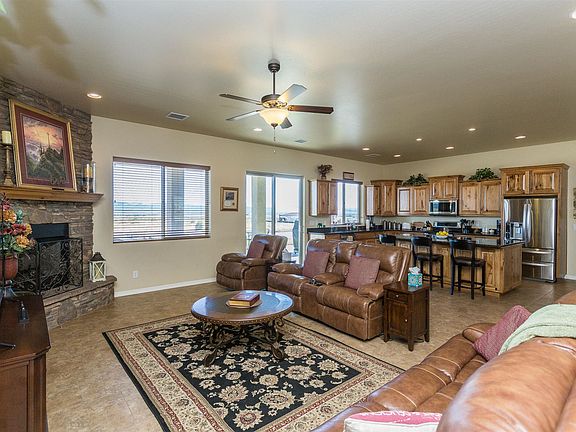 Reduced by $6,000!!! Mountain Views all around! Fully Fenced. Country living close to town. Horse Property on 3+ acres. Open style floor plan. 4 bdrms, 3 full baths, 2545 sq ft, and Oversized 3 car garage. Split floor plan, Raised ceilings, Granite countertops and Custom cabinetry throughout. Stainless appliances. Large Kitchen island open to large living and dining area, perfect for entertaining. Beautiful stone, wood-burning fireplace, Lg master closet, Walk-in tiled master shower, Lg Garden tub. Beautiful Landscaping with extended paved patio, artificial grass, and large cement slab ready for your basketball hoop or your personal outdoor entertainment design. Must see in person! Owner Agent