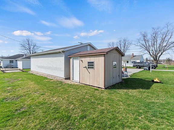 Take comfort in this meticulously maintained 1,819 Sq Ft Ranch home located in the Village of Hoagland. With 3 Bedrooms and 2 Full Baths, this charming home offers a warm ambiance complemented by new, attractive vinyl plank flooring, creating a cozy atmosphere for both everyday living and entertaining guests. The spacious primary bedroom ensuite provides a private retreat. Storage options are plentiful with a large 24 x 36 Detached Garage and a convenient 10 x 12 garden shed. Modern upgrades, including a newly installed kitchen countertop and backsplash in 2024. Essential appliances such as Refrigerator, Gas Range, Washer-Dryer, along with a 2-year-old Water Softener and Garage refrigerator, are all included in the sale, providing seamless living from day one. Rest assured with a seller provided $572 home warranty through Cinch Home Services. New gas water heater installed in 2019. Enjoy the outdoors from the comfort of your wood deck in front, perfect for morning coffees or evening stargazing. Located in East Allen County School district (Heritage HS). Flood insurance is required for this property; the seller currently pays $1,014 annual premium to Superior Flood Insurance through Lloyds of London, providing peace of mind against unexpected events. Don't miss out on the opportunity to make this exquisite property your own. Schedule a private viewing and experience the charm of this home for yourself.