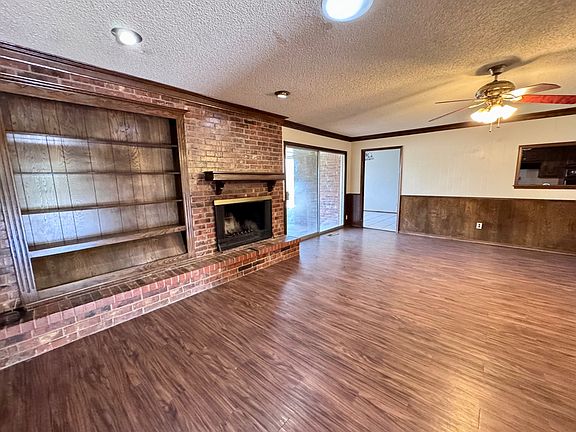 Large four bed and three full bath home featuring mother-in-law suite with adjoining bathroom away from the other bedrooms. Two large living and dining areas. Brick fireplace with built-ins, and a large backyard with covered patio. Main suite has large walk-in closet. Located close to shopping. A must see