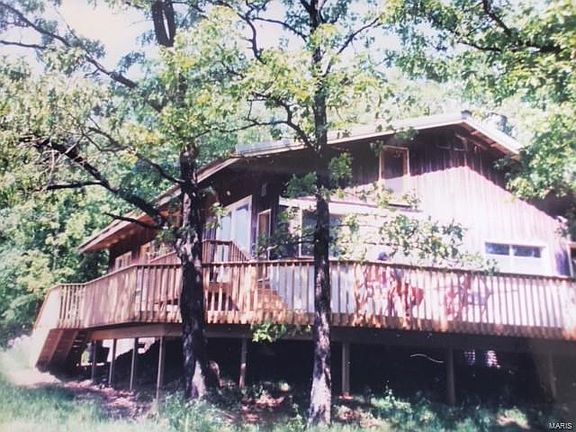 Large 1600+ Square foot home surrounded by 61.1 beautiful Ozark hills. This home features a wrap around deck, a well, is fenced and cross fenced and a good basement. There is two large Workshops and another large building that was used as a hanger for an airplane (3-buildings total). Some photos are older.