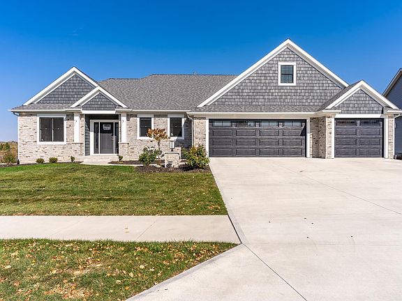 Nestled in the idyllic neighborhood of Prairie Meadows, this custom-built Bob Buescher home has all the space and upgrades that you would want in a home. Located in the award-winning SACS school system and just 2 miles to highway 69, this area is a hidden gem surrounded by nature while sitting on a beautiful, private water view lot. You will find four bedrooms, three full and one-half baths, and almost 4,000 square feet. The home includes 9-foot ceilings both upstairs and downstairs, quartz countertops, surround sound throughout the house, an extra large three-car garage to accommodate larger SUVs, a staircase from the garage to the basement, two fireplaces, and a large covered Trek deck to watch sunrises and sunsets. The sale includes the hot tub outside. The sellers put a lot of thought when designing this 4-year-old home, and the details show. One of the best parts is that you will never have anyone building to the west of you.