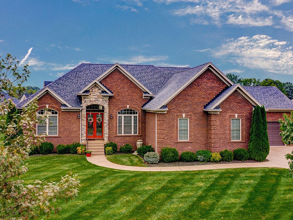 Rare, Updated, Spacious, Luxurious, In Ground Heated Pool, Finished Theater Room, Walk Up Basement, 3 Car Garage, Brick & Stone Exterior, Custom Built Ranch in Little Spring Farm! Walk into a stunning Foyer with 8 Foot Double Doors and Hardwood Flooring that leads to a Formal Dining Room (also configured and currently being used as an Office) with French Doors. You'll love the Light-Filled Great Room with Hardwood Floors and Gas Fireplace flanked by Custom Built-in Bookcases. The Great Room flows nicely to a Custom Kitchen with Upgraded Cabinetry, Granite Countertops and Professional Stainless-Steel Appliances. There's a Dining Area off of Kitchen features an Octogen Trey Ceiling and large Family Room off the Kitchen. There are French Doors off the Kitchen leading to the Covered Deck with