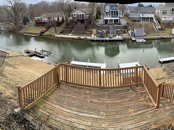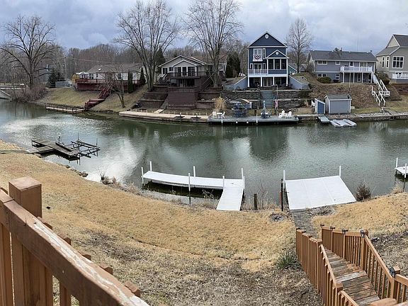 Look no further for your Lake Wawasee channel home! This home is a very short boat ride to the lake and Johnson's Bay. Two new piers and plenty of deck space to enjoy your channel views. Spend your nights enjoying the serenity of the lake on your deck, back porch or sunroom. This home has 3 bedrooms, 2 full baths, with a split bedroom floor plan, and a detached garage for your lake toy and storage needs. Come make this home your own with your own design touches. News/updates added: Landscaping around home including channel front hill - bushes removed and ivy planted; addition to back porch/deck by 5 feet by 36 ft; added lower deck for seating and new steps to channel; 2 aluminum piers with one being L-shaped; master bath tub removed and walk in shower installed, window removed and vent fan installed; new water softener; some new doors, interior lights, exterior motion lights; ADT system; many other new/updated items.